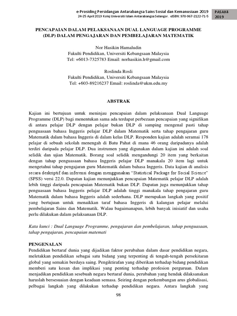Satu bahasa sahaja dignakan sewaktu menjawab peperiksaan bagi program dlp. Siapa yang boleh ikuti kelas online ini. Penggunaan Bahasa Inggeris Oleh Guru Semasa Mengajar Matematik Bahasa Inggeris digunakan untuk kelas yang baik manakala untuk kelas yang sederhana dan lemah dwibahasa akan digunakan. Digunakan untuk meninjau tahap kebimbangan mengikut jantina etnik dan jurusan.