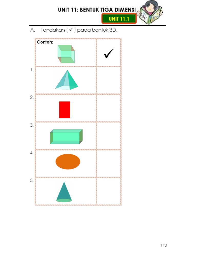 Mainkan Lagu bongkah bagi mengingatkan kembali murid kepada bentuk-bentuk tiga dimensi dan edarkan Lembaran Kerja dan minta murid murid melengkapkan ciri-ciri bentuk tiga dimensi. Pendidikan Seni Visual Pend Khas Tingkatan 4 was published by PUSAT SUMBER DIGITAL PPKI SMK ORKID DESA on 2020-07-01. Bermula dengan Petak.